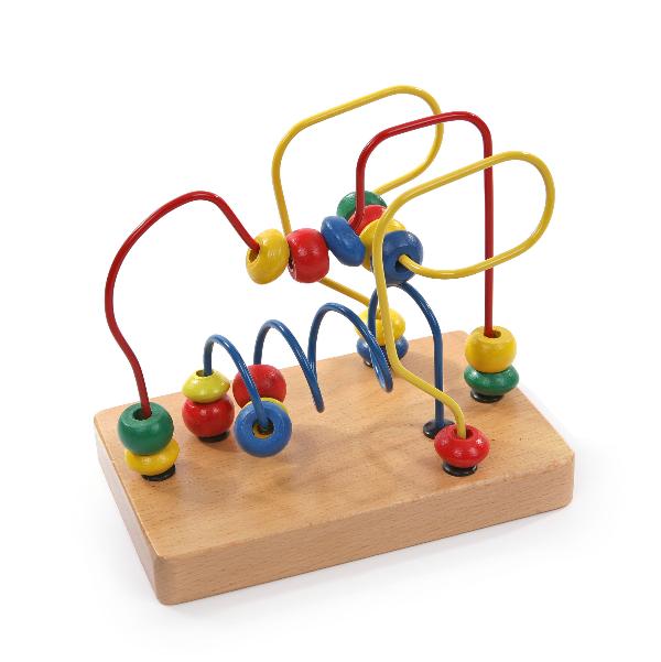 На каждую проволоку нанизаны маленькие цветные фигурки из дерева, которые можно передвигать.