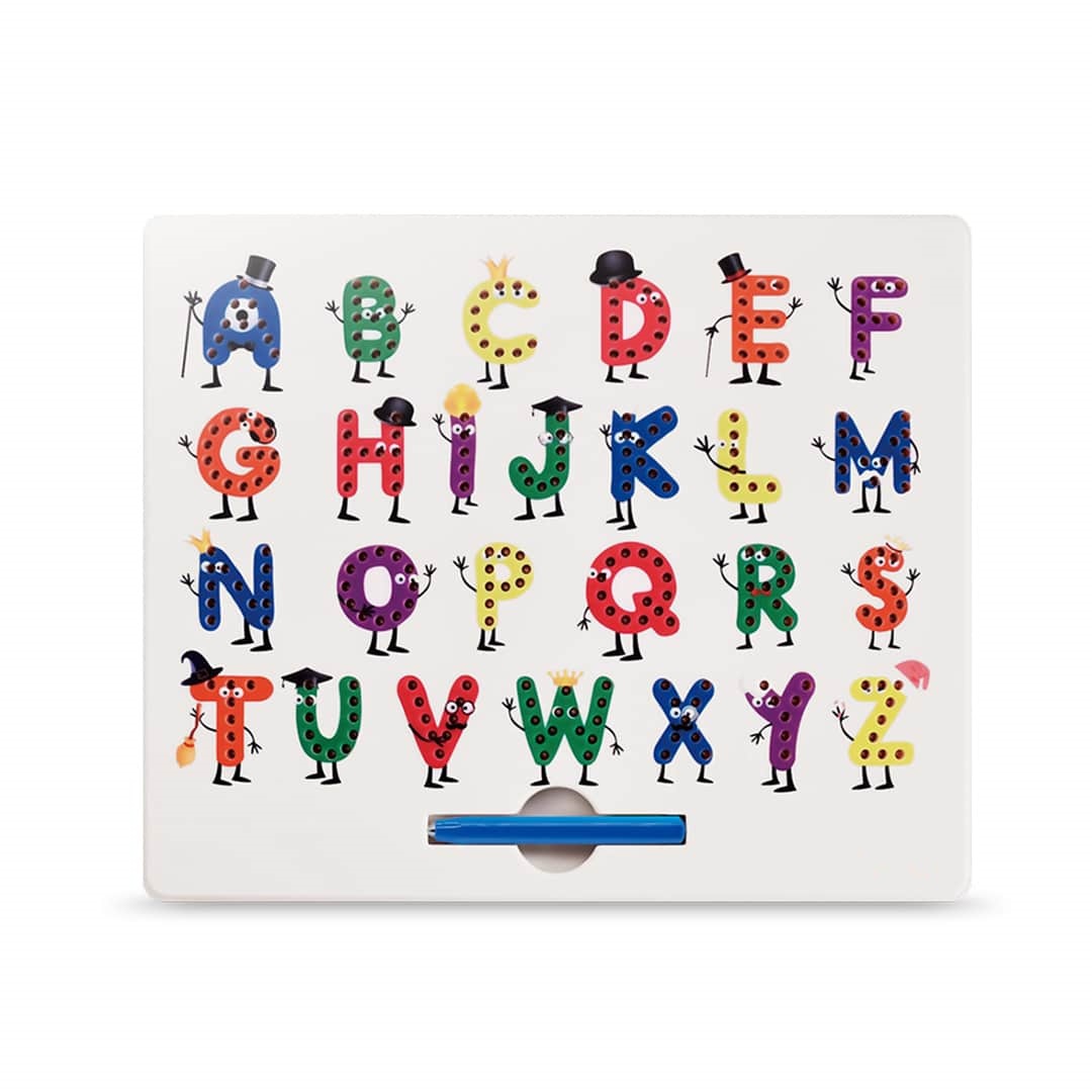 Это интересный интерактивный вариант обучения, для которого не нужны ни канцелярия, ни доступ к всемирной сети! Рисуйте при помощи магнитного пера! Оно входит в набор, и с его помощью можно прямо в процессе игры изучать английские буквы. Достаточно провести пером по поверхности, чтобы металлические шарики, спрятанные внутри, сформировались в знакомые символы.