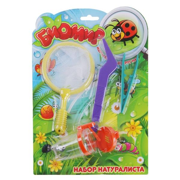 Набор состоит из сачка для ловли летающих насекомых, баночка для хранения, два пинцета.