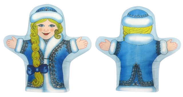 Мягкая яркая рукавичка представляет всем известного персонажа — Снегурочку. Рисунок нанесен на ткань с помощью печати. Высота рукавички 22 см и она идеально подойдет как для детской, так и для взрослой руки и с легкостью на нее надевается.