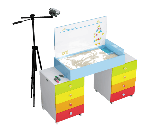 Благодаря такому многофункциональному комплексу педагог сможет проводить занятия на развитие: творчества, математических навыков, навыков письма и чтения. Помимо этого работа с песком улучшает мелкую моторику рук, способствует развитию концентрации внимания и усидчивости детей.
