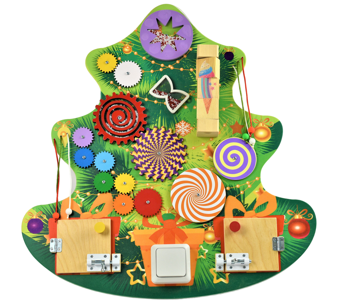 Бизиборд «Новогодняя Елка» - это увлекательная игровая панель для детей от 10 месяцев до 5 лет. Яркая расцветка, крутящиеся элементы, дверцы с различными замочками надолго заинтересуют Вашего малыша, уча и развивая его через игру. А новогодняя праздничная тематика этого бизиборда принесет ребенку яркие ощущения.