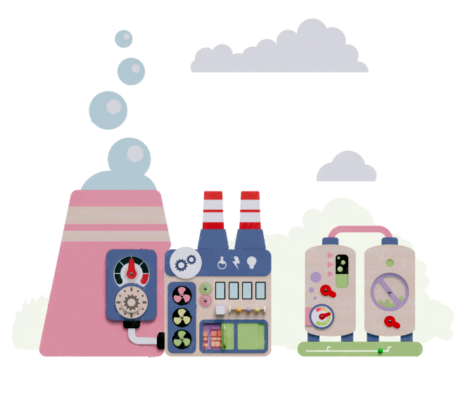 Декоративно-развивающая панель «Фабрика» полностью безопасна для ребенка. не имеет аллергенов, острых углов и соответствует всем требованиям к ясельному оборудованию.