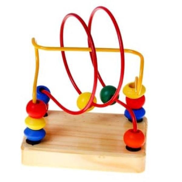 По каждой проволоке можно перемещать деревянные фигурки. Фигурки разного цвета и формы.