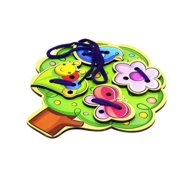 В наборе: рамка (18х20 см), накладные фигурки с отверстиями для шнурования (4 шт.), шнурок.