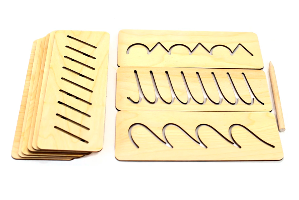В комплекте: 5 трафаретов, деревянный стилус (палочка для письма).