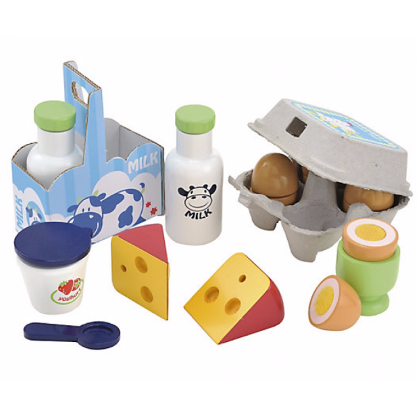 Набор игрушечных продуктов «Завтрак» подобран в европейской традиции. В специальном контейнере находятся 2 симпатичные бутылочки молока с крышками, которые можно открывать и закрывать с помощью липучек.